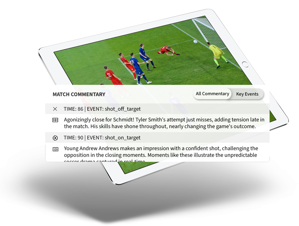 Incorporate AI-driven insights such as live text commentary, match previews, and summaries to deliver real-time narratives that engage and entertain. This keeps fans on the edge of their seats and provides vivid storytelling that enhances their experience and understanding of the game.